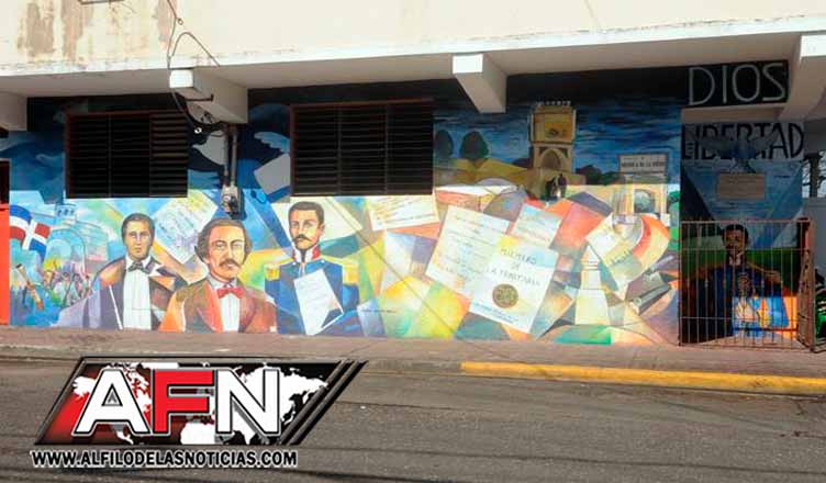 Las paredes exteriores del vetusto edificio están atiborradas de imágenes de los Padres de la Patria, con frases de Duarte y otros próceres y alegóricas a las epopeyas de la Independencia Nacional y la Restauración de la Republica, en las cuales Mella fue protagonista de primer orden.