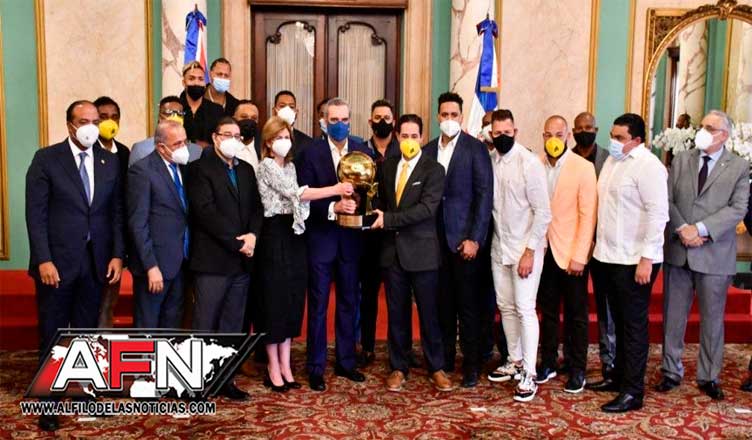 SANTO DOMINGO.- El presidente Luis Abinader recibió este martes en el Palacio Nacional a los campeones Águilas Cibaeñas, quienes obtuvieron la corona número 21 en la Serie del Caribe para el país y la sexta a nivel individual para las cuyayas.