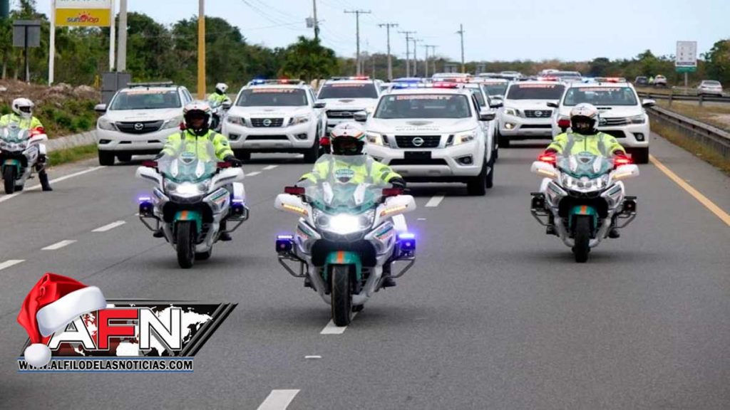 Durante el carreteo, los agentes de la Digesett se colocan delante de los vehículos para controlar la velocidad de los conductores y evitar accidentes de tránsito, medida implementada por la alta cantidad de personas que regresan a la misma hora de los distintos pueblos de República Dominicana.