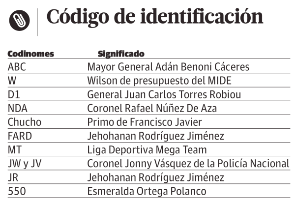 Según el Ministerio Público el cerebro financiero de esta operación era el coronel Rafael Núñez de Aza, pero, además de él, el general Adán Cáceres y Raúl Alejandro Girón fueron beneficiados, a través del esquema, estos nuevos imputados y para los cuales están pidiendo 18 meses de prisión preventiva y declarar el caso complejo.