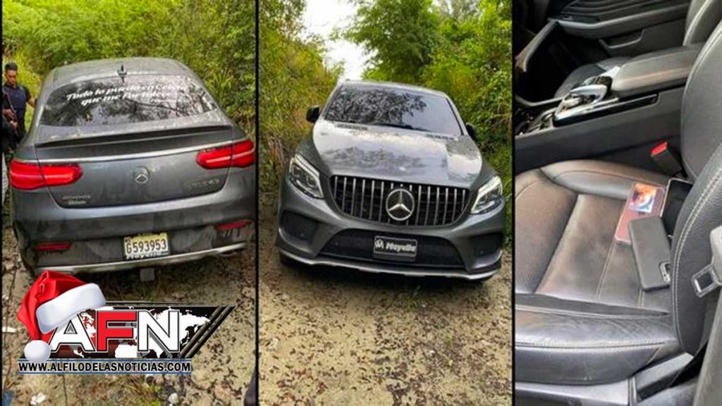 Se trata del jeep marca Mercedes Benz, gris, año 2017, placa No. G593953, el cual fue localizado por los agentes actuantes en una calle en medio de dos fincas del sector Magiolo Cofresi, próximo al vertedero de esa ciudad, lugar donde fue dejado abandonado por los desaprensivos. En el interior del automóvil, los agentes actuantes encontraron la llave del Jeep y tres celulares.