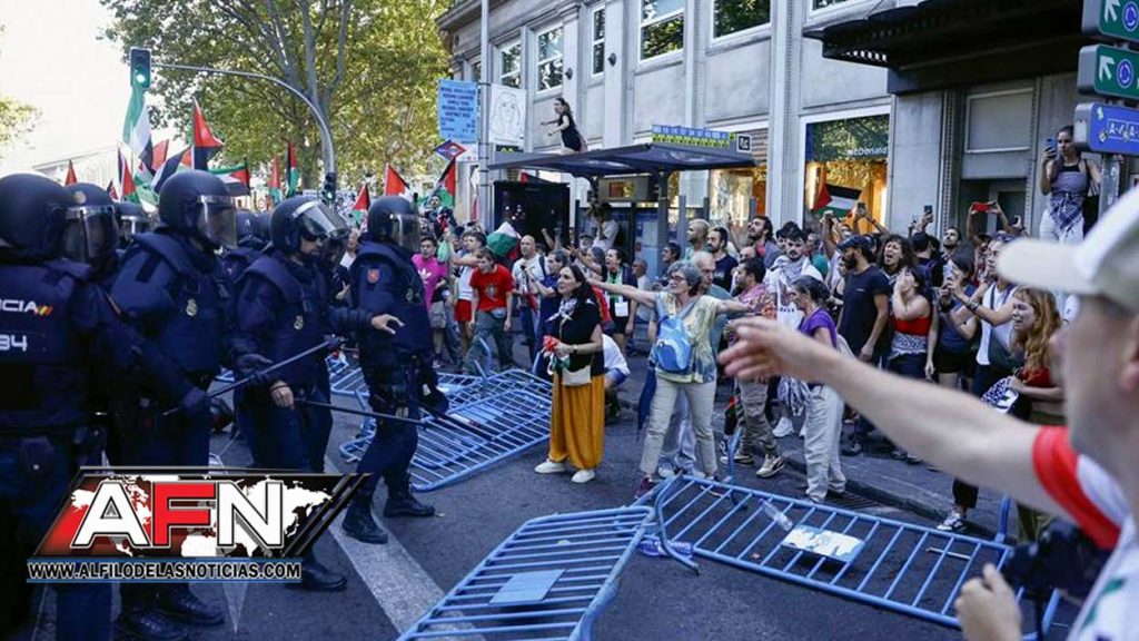 ESPAÑA.- La Vuelta a España del 90 cumpleaños terminó a 56 km de la meta de Cibeles por las manifestaciones y disturbios de los grupos propalestinos que invadieron las principales calles de Madrid, obligando a cargas policiales.