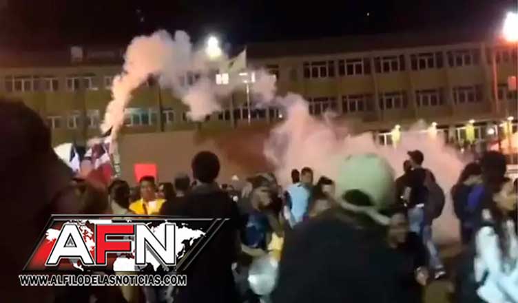 En un video difundido en Twitter por el director de cine José María Cabral se observa a los manifestantes replegarse mientras las bombas lacrimógenas caían cerca de ellos.