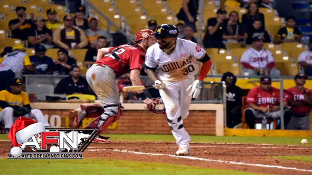 Fue un partido el que las Águilas conectaron 15 hits, incluido un robo de home, en el quinto por parte de Coco Montes para una victoria que los acerca a juego y medio del cuarto puesto que ocupan los Tigres del Licey, libres la noche de este sábado al ser suspendido por lluvia el partido que disputarían contra las Estrellas Orientales en el Estadio Quisqueya Juan Marichal.