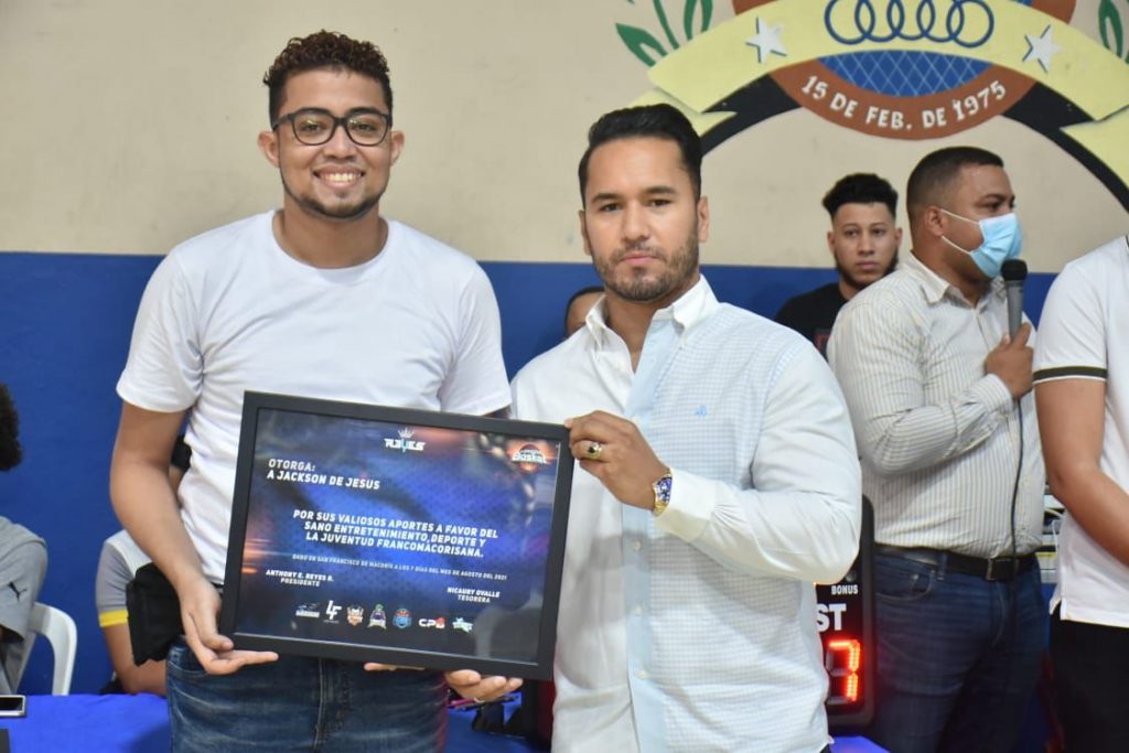 SAN FRANCISCO DE MACORÍS.- La Liga Deportiva Intercolegial reconoció en el día de ayer al joven empresario e ingeniero Jackson de Jesús, por sus aporte al entretenimiento deportivo.