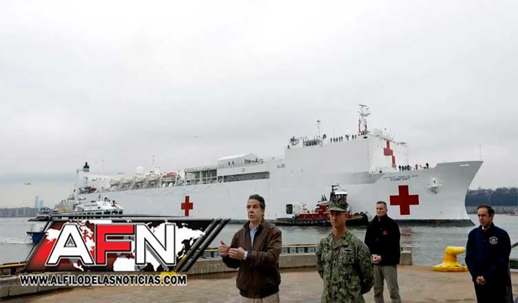 NUEVA YORK.- El buque hospital USNS Confort de las Fuerzas Armadas de EE.UU. arribó este lunes al muelle de Manhattan para reforzar la capacidad de los hospitales, que ya dan señales de desbordamiento debido a la cantidad de personas que han enfermado de COVID-19 mientras la ciudad se apresura a establecer instalaciones de emergencia.