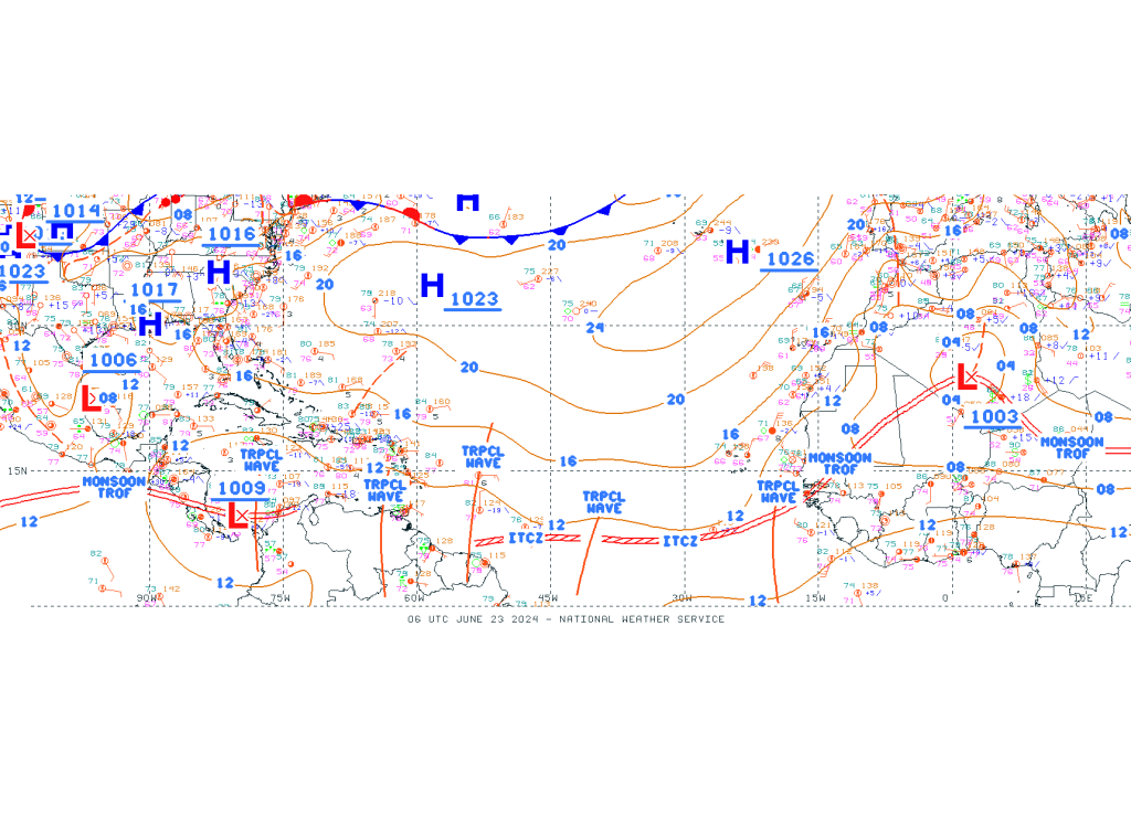 El Centro Nacional de Huracanes de Estados Unidos muestra actualmente cinco ondas tropicales, tres en el océano Atlántico y dos en el mar Caribe.
