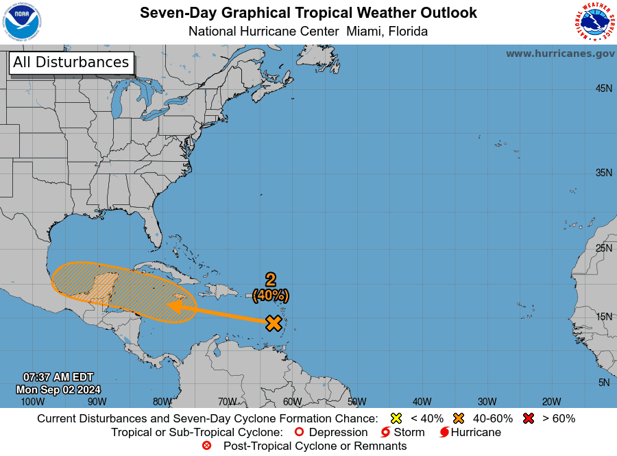 Se pronostica que las condiciones ambientales se volverán más propicias para el desarrollo cuando el sistema alcance el oeste del Mar Caribe y el suroeste del Golfo de México a fines de esta semana y durante el fin de semana, y una depresión tropical podría formarse en ese momento.