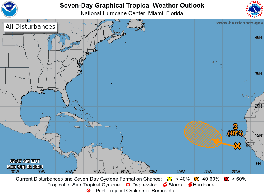 «Se pronostica que las condiciones ambientales gradualmente se volverán más propicias para el desarrollo, y una depresión tropical podría formarse en unos pocos días mientras la perturbación se mueve lentamente hacia el oeste-noroeste o hacia el noroeste sobre el Océano Atlántico tropical oriental», según el CNH.