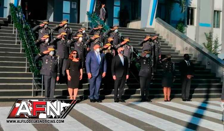 Abinader fue recibido por una comisión de oficiales policiales, encabezada por el director general de la institución y la subdirectora, general de Brigada Teresa Martínez.