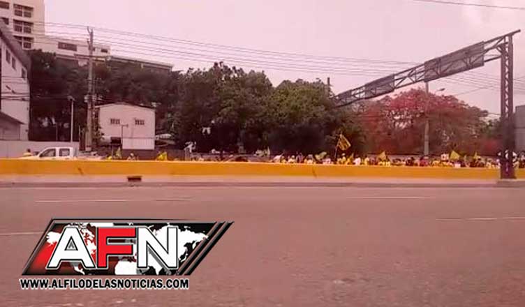 La protesta se realiza sin que el presidente Danilo Medina esté en la Capital, dado que del sábado está recorriendo los pueblos del país para conquistar el voto a favor del candidato presidencial Gonzalo Castillo.