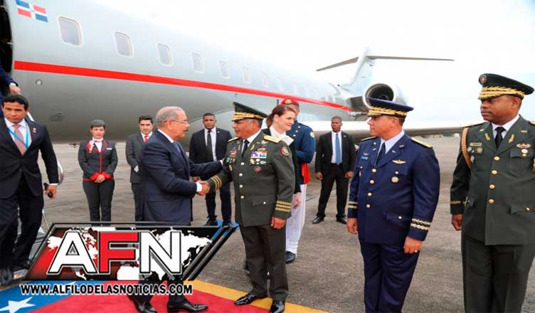 SANTO DOMINGO.- El presidente Danilo Medina regresó al país, a las 5:53 de la tarde, por la Base Aérea de San Isidro, procedente de Guatemala, luego de concluir su participación en la LIII Reunión de Jefes de Estado y de Gobierno del Sistema de Integración Centroamericana (SICA).