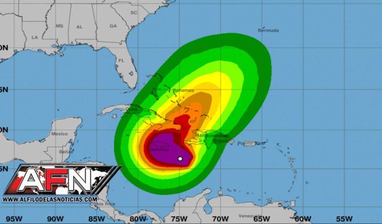 “Fue localizada aproximadamente a unos 385 kilómetros al suroeste de Puerto Príncipe (Haití) y a 270 km al sureste de Kingston (Jamaica) moviéndose hacia el noroeste a 6 km/h. Posee vientos máximos sostenidos de unos 110 km/h con ráfagas superiores y se pronostica que se convierta en huracán en las próximas horas”.
