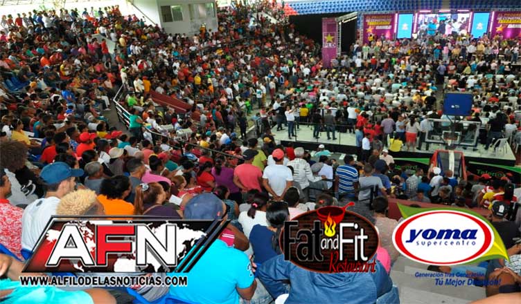 DUARTE.- Con gran entusiasmo congregados en el Pabellón Bajo Techo del complejo deportivo Juan Pablo Duarte en una fiesta con varios artistas, miles de residentes de la provincia Duarte se dieron cita al municipio cabecera San Francisco de Macorís, para respaldar la obra de gobierno del presidente Danilo Medina.
