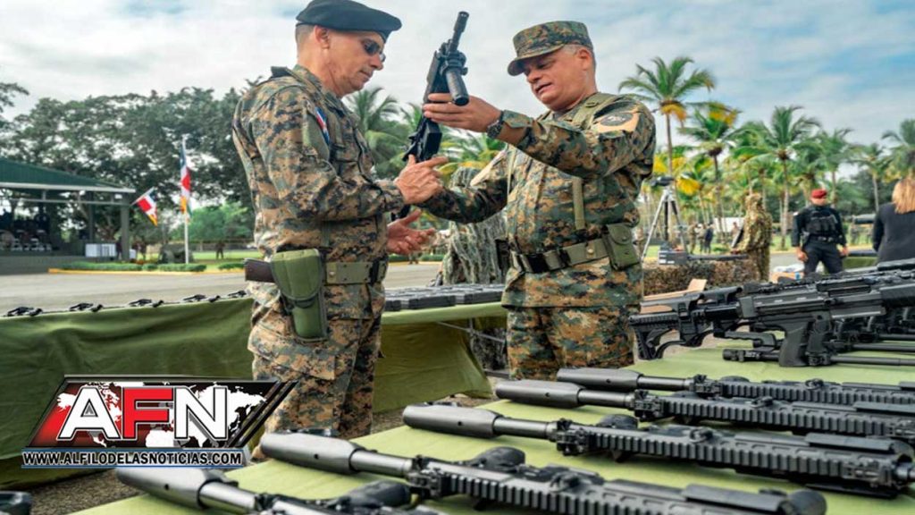 El lote entregado incluye fusiles IWI ARAD calibre 5.56, ametralladoras Negev calibre 7.62 destinadas a plataformas de patrullaje y transporte, fusiles de precisión Barrett y Daniel Defense, así como más de 11,000 uniformes de faena confeccionados por la Industria Militar Dominicana, entre otros avituallamientos.