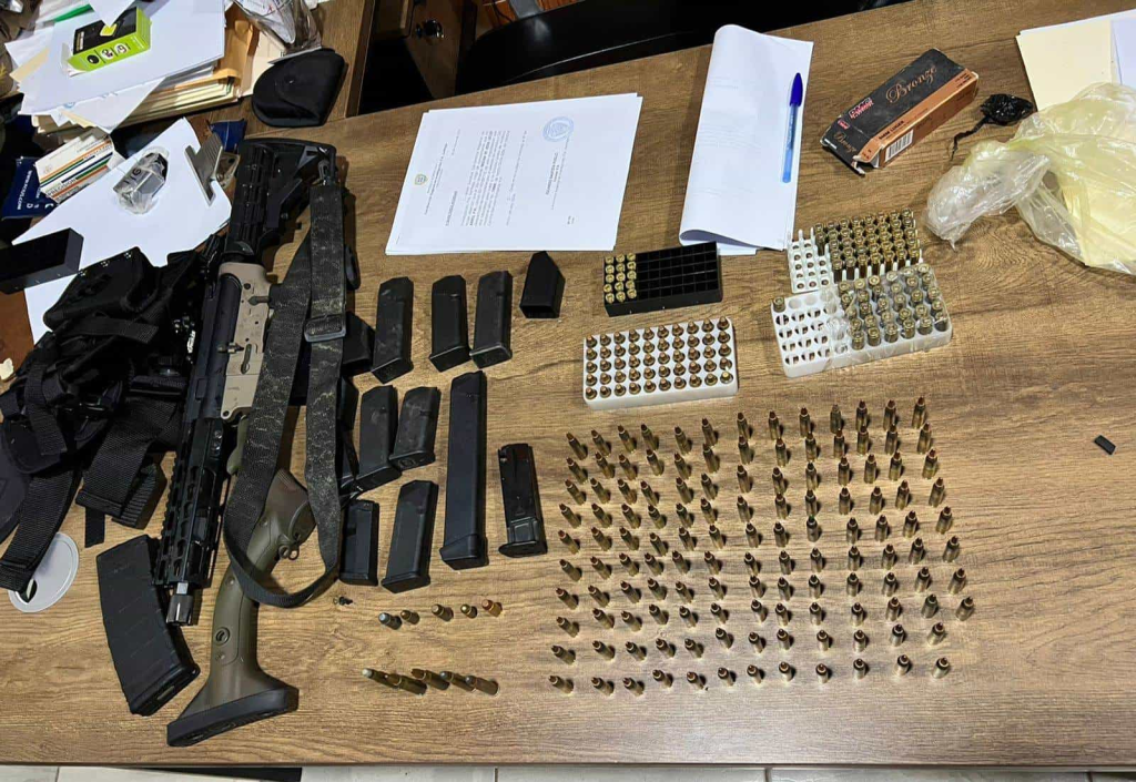 Además, se encontraron 10 cargadores para pistolas, cinco instrumentos para cargar municiones, una culata y un peine para fusil, dos perneras y dos bolsas para pistolas.