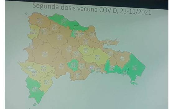 De acuerdo a los datos socializados por el director General de Epidemiología (Digepi), doctor Ronald Skewes, y el viceministro de Salud Colectiva, doctor Eladio Pérez, esta demarcación alcanza un 54.9% de vacunados en segunda dosis.