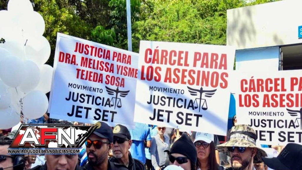 SANTO DOMINGO.- La protesta convocada por el Movimiento Justicia por el Jet Set para este domingo se desarrolla entre  dolor y sed de justicia por los fallecidos el 8 de abril de 2025, tras desplomarse el techo de la discoteca.