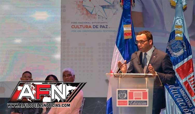 SANTO DOMINGO. – Por segundo año consecutivo, el ministro de Educación, Andrés Navarro, encabezó el “Foro Nacional Estudiantil por una Cultura de Paz: República Digital, una oportunidad para construir una ciberciudadanía responsable”, espacio donde debatirá cara a cara con 360 estudiantes de todo el país sobre la sana convivencia en los centros educativos y otras inquietudes que coadyuven con el mejoramiento del ambiente escolar.