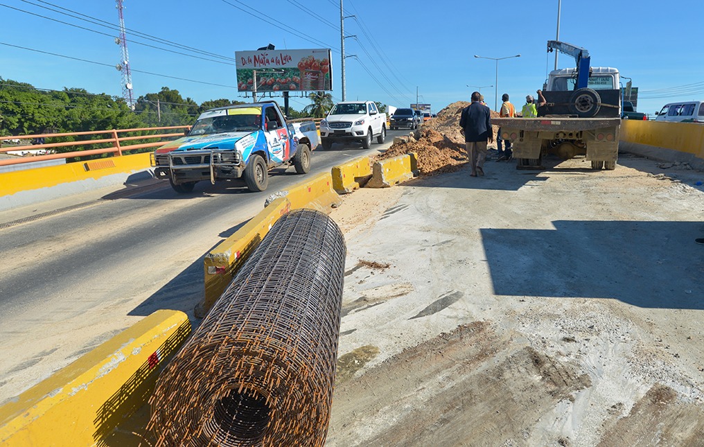 De acuerdo con el MOPC, técnicos de esa institución trabajan para corregir una fuga de agua que corre de norte a sur por el sistema de alcantarillado, debajo de la citada estructura y que produjo el deslizamiento de tierra y el hundimiento del pavimento.