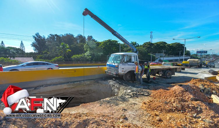 SANTO DOMINGO. – El Ministerio de Obras Públicas y Comunicaciones (MOPC), informó este lunes que trabaja día y noche para resolver en los próximos 15 días, el socavón que el pasado viernes se produjo en el elevado del kilómetro 12 de la autopista Duarte y su intersección con la avenida Monumental.