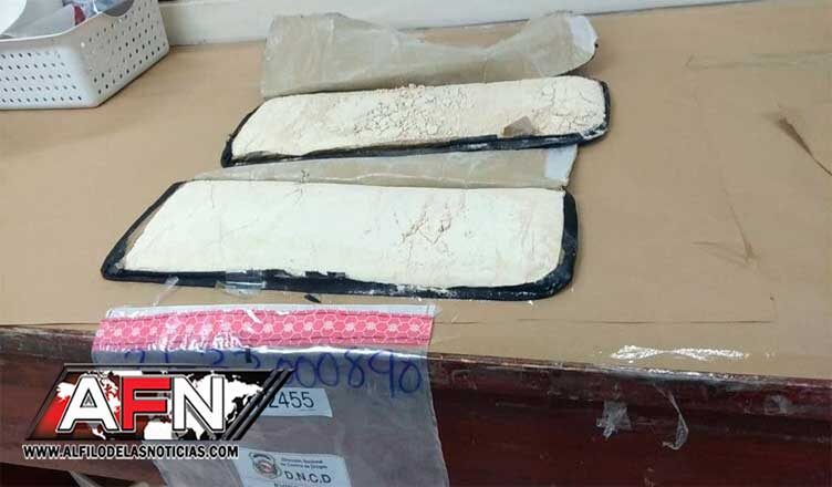 Añade que, tras realizar el proceso de inspección, en presencia de un fiscal adjunto, le fue detectado en ambos lados de una maleta, dos láminas envueltas en papel marrón conteniendo la heroína, cuyo peso total fue de 2.68 kilogramos, según el análisis del Instituto Nacional de Ciencias Forenses (INACIF).