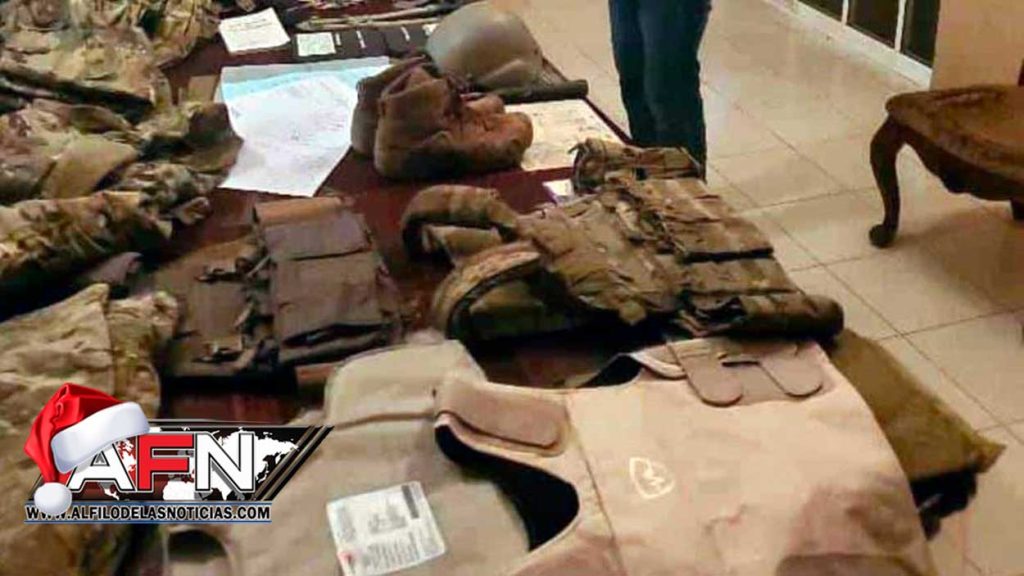 Sumado a estos elementosagentes aduanales interceptaron la culata y corredera de un arma múltiple PA-15, 4 estuches de arma de fuego, 1 estuche de esposas, 1 casco balístico y 3 chalecos antibalas con 2 placas de refuerzo.
