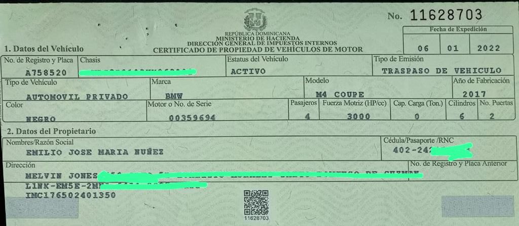 SAN FRANCISCO DE MACORÍS.- Ofrecen una recompensa en efectivo a quien tenga información sobre una matrícula extraviada en esta ciudad.