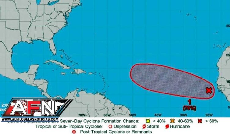 El sistema tropical es vigilado por la Oficina Nacional de Meteorología (Onamet), entidad que manifestó que la zona de aguaceros y tormentas eléctricas asociada a la onda tropical se moverá cerca de las afueras de la costa occidental de África.