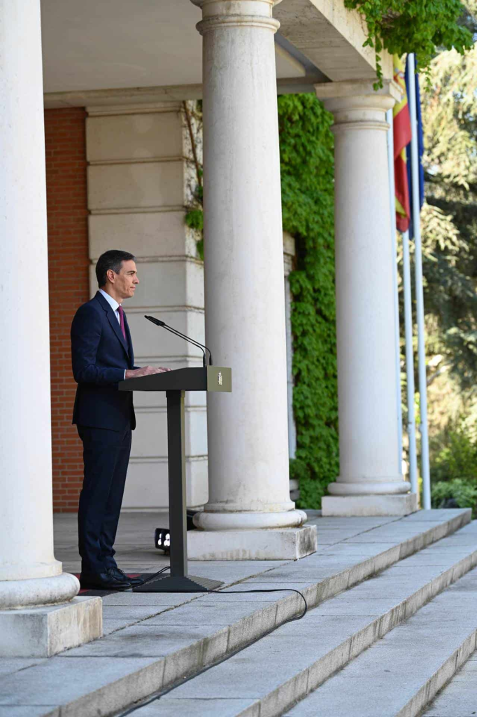 Ante lo que calificaba como una campaña de acoso y derribo contra él y su esposa, Sánchez ha tomado la decisión de mantener el poder, todo ello a través de una declaración institucional en el Palacio de la Moncloa, sede de la presidencia.