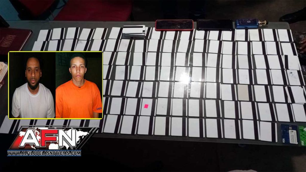 SANTIAGO DE LOS CABALLEROS.- La Policía Nacional, informó este miércoles, sobre el apresamiento de dos hombres, mientras realizaban compras en un establecimiento comercial con tarjetas presuntamente clonadas del programa Supérate, en el municipio de Navarrete.