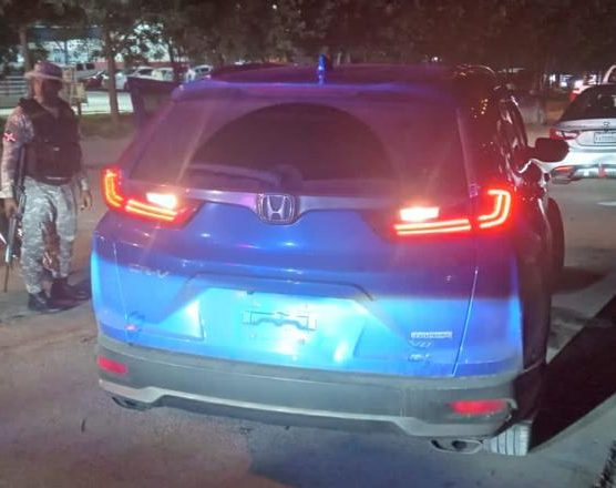Dicho vehículo al ser requisado se encontró en su interior cuatro T-shirt, tres gorras de color negro, todos con las abreviaturas de la Dirección Nacional de Control de Drogas (DNCD), una pistola de fogueo, una placa de vehículo No. G626938, tres placas de exhibición presumiblemente falsas y fotografías de las posibles víctimas.
