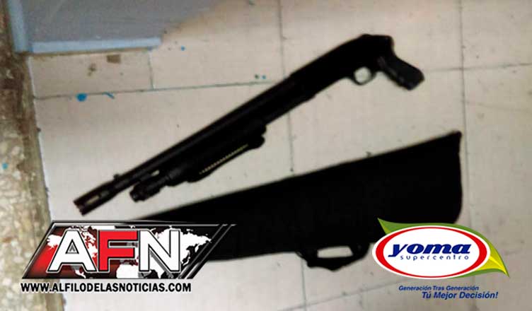 Según las autoridades policiales, tras el arresto de Alfredo Paredes Concepción alias Papú de 50 años de edad, lograron recuperar la escopeta marca Mossberg calibre 12 y un estuche para la misma.