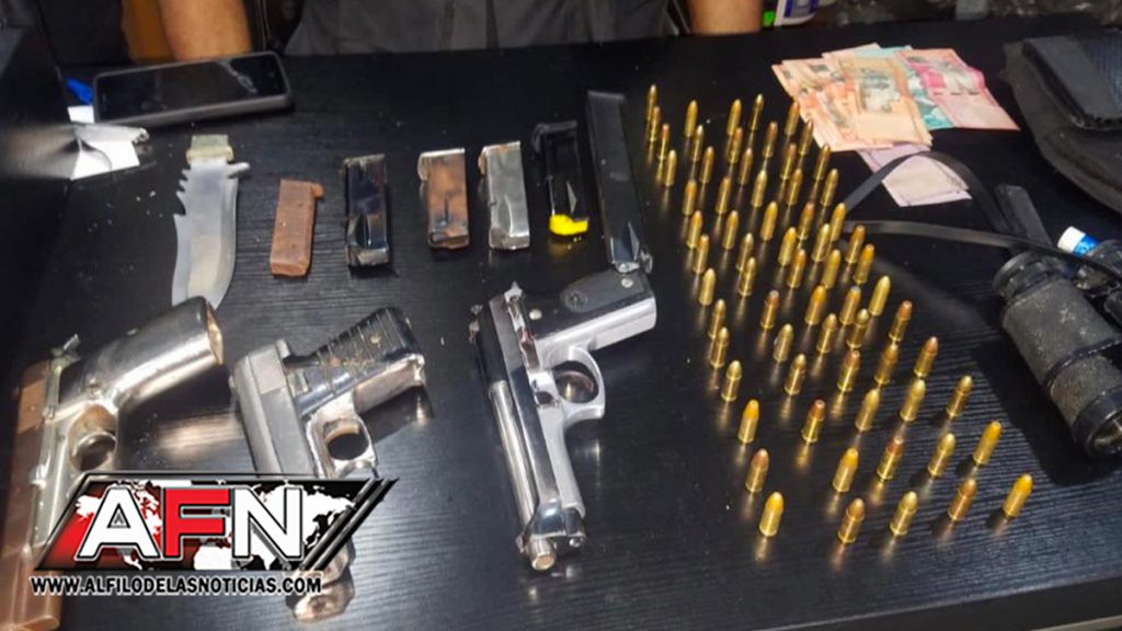 Al apresarlo, las autoridades le ocuparon tres pistolas sin documentos, señalando la primera, como una Taurus PT, calibre 9 milímetros, niquelada, con la cacha negra, serie B56390; la segunda marca no legible, color niquelado con negro, serie 245PP33590; la otra marca y numeración no legible calibre 9 milímetros.
