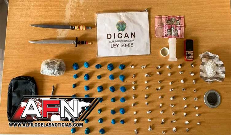 AZUA. – La Policía Nacional informó este jueves sobre el apresamiento de dos hombres por separado a quienes presuntamente se les ocupó una cantidad de marihuana y cocaína, en un hecho registrado en la provincia de Azua.