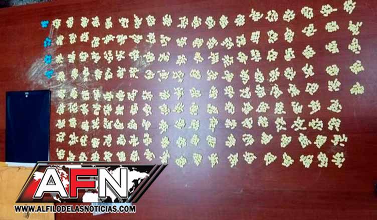 En una gaveta del vehículo, los policías actuantes ocuparon 97 pastillas supuestamente de éxtasis distribuidas en dos fundas plásticas.