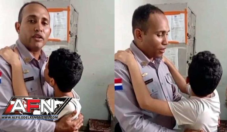 En las imágenes difundidas se puede observar el conmovedor momento en que la madre, Altagracia Espinal, abraza entre lágrimas a su hijo al reencontrarse con él en el destacamento.