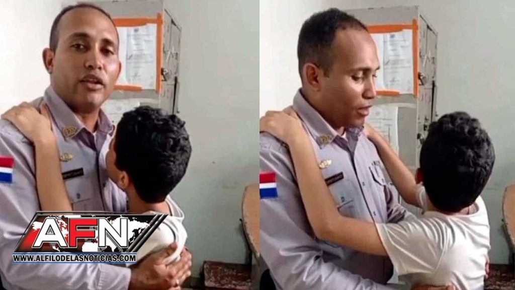 En las imágenes difundidas se puede observar el conmovedor momento en que la madre, Altagracia Espinal, abraza entre lágrimas a su hijo al reencontrarse con él en el destacamento.