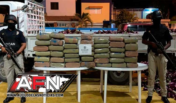 Los detenidos son Roberto Antonio Adames Díaz, de 49 años; y Gregory Pérez Báez (Alejandrito), de 25, quienes se desplazaban en un camión donde, presuntamente, transportaban la droga, de acuerdo con un comunicado de la Policía Nacional.