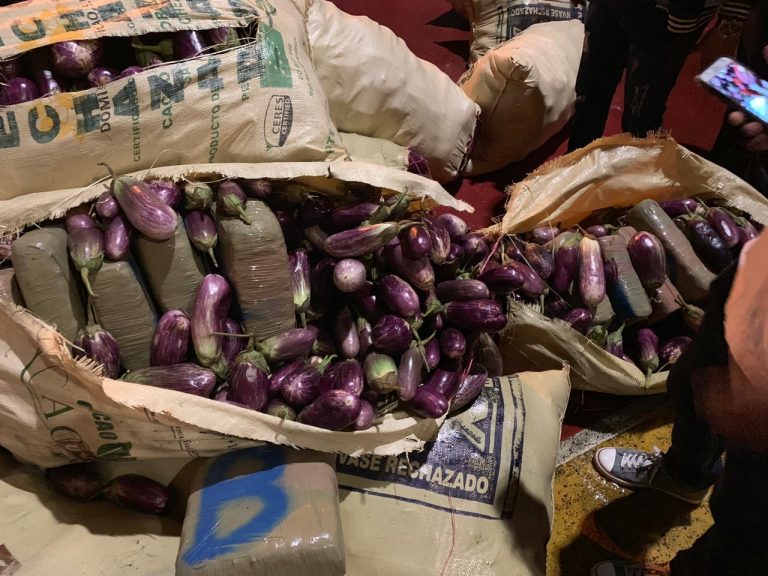 El comunicado señala que la droga estaba camuflajeada en 57 sacos con berenjenas.
