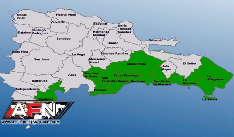 Las provincias en alerta son Monte Plata, La Altagracia, Distrito Nacional, Barahona, Peravia, La Romana, San Cristóbal, San Pedro de Macorís, Santo Domingo y San José de Ocoa.