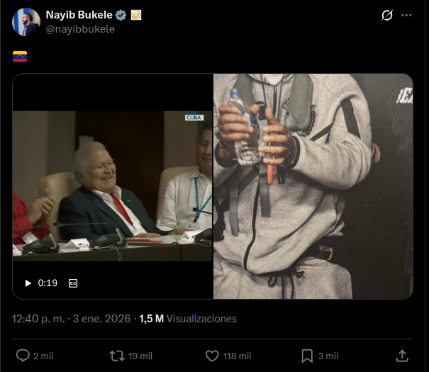 EL SALVADOR.- No necesitó decir ni una sola palabra, el presidente de El Salvador Nayib Armando Bukele solo subió un vídeo de Nicolas Maduro, donde lo amenazaba, en respaldo a su captura este sábado por Estados Unidos.