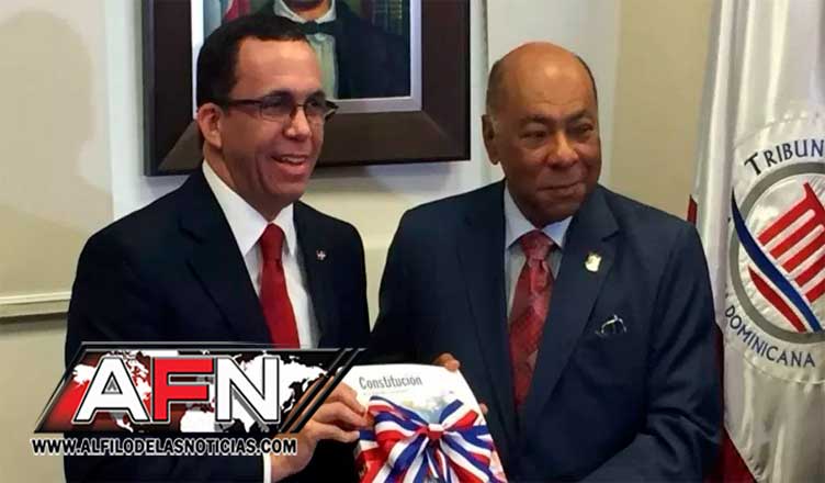 SANTO DOMINGO.- El presidente del Tribunal Constitucional, doctor Milton Ray Guevara hizo entrega este viernes al Ministro de Educación Andrés Navarro 12 mil ejemplares  de la Constitución Escolar de la República Dominicana.
