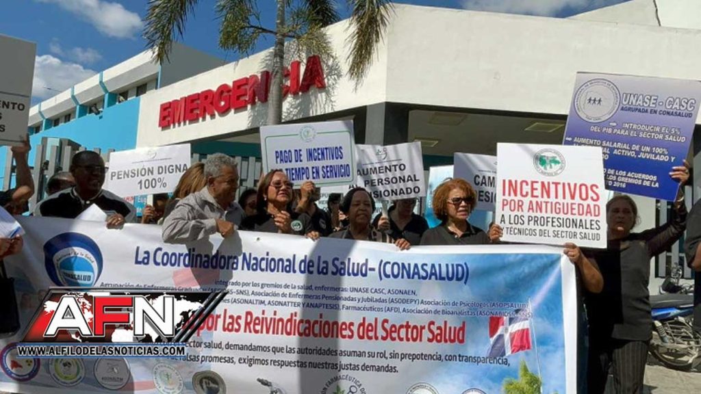 SANTO DOMINGO.- La Coordinadora Nacional de la Salud (Conasalud) se plantó este martes en las inmediaciones del Hospital Pediátrico Robert Read Cabral para exigir sus reivindicaciones al Gobierno.