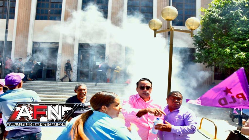 SANTO DOMINGO.- Cientos de personas del Partido de la Liberación Dominicana (PLD), acudieron este lunes frente al Palacio de Justicia de Ciudad Nueva, en apoyo a los compañeros presos en la Operación Calamar, pero terminó con heridos, botellazos y bombas lacrimógenas.