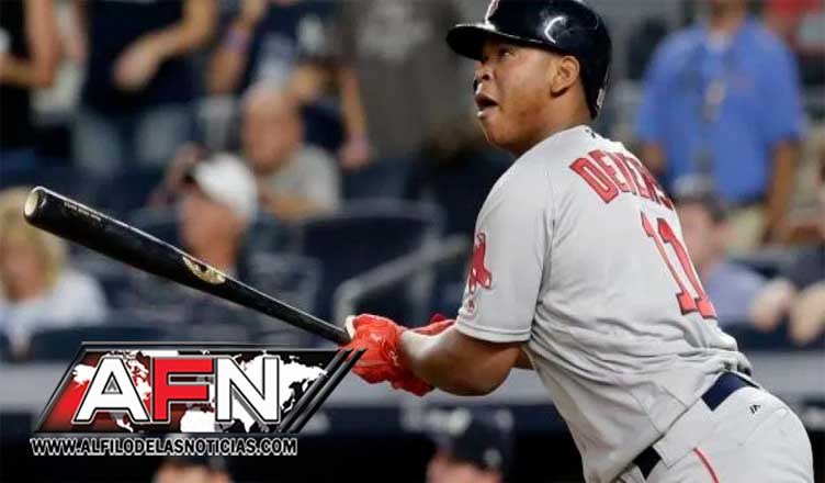 BOSTON, EE.UU.- El dominicano Rafael Devers pega jonrón e impulsa dos carreras en la victoria de los Medias Rojas Boston 5 por 4 sobre los Gigantes de San Francisco.