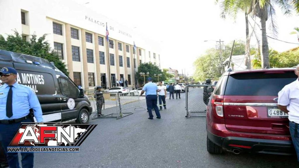 Desde el mediodía de este lunes la seguridad en torno al edificio fue reforzada, tras un incidente entre los simpatizantes del Partido de la Liberación Dominicana que acudieron a la sede judicial a manifestarse por las detenciones y los agentes que custodiaban el recinto.