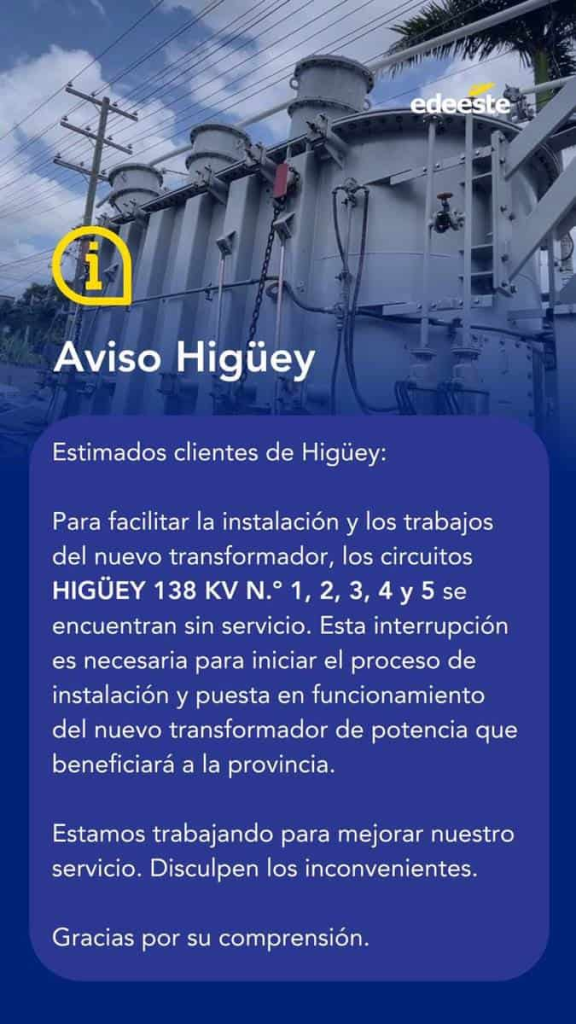 De acuerdo con los usuarios, cuando llaman a la Empresa Distribuidora de Electricidad del Este (Edeeste), les informan que están trabajando para solucionar la situación. Sin embargo, algunos sectores no perciben ninguna mejoría.