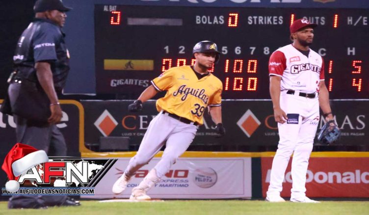 SAN FRANCISCO DE MACORÍS.- El novato Bladimir Restituyo pegó doble y sencillo, remolcó dos anotaciones y fue la punta ofensiva en el triunfo este jueves de las Águilas Cibaeñas, 4-1, sobre los Gigantes del Cibao, que fueron limitados a solo 5 hits por el pitcheo aguilucho.