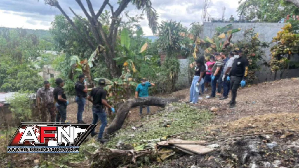 Durante la inspección técnica de la escena, los agentes investigadores, junto a representantes del Ministerio Público, detectaron un área de tierra removida en un solar frente a la vivienda.